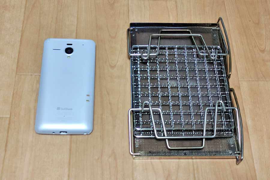 サイズは縦13×横20×厚さ1.9cm、重さ320gと超薄型でコンパクトです。材質は土台が特殊耐熱鋼、焼き網は鉄とクロームメッキです。