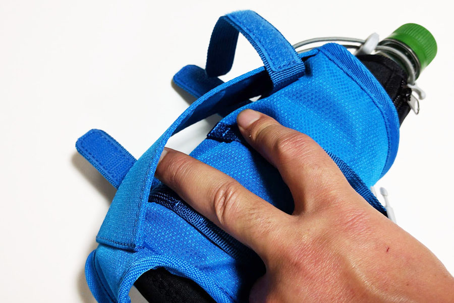 ドリンクボトルをしっかりとつかむ工夫がされていて、アクティビティ中に体が動いてもボトルが動いたり落ちたりすることがありません。