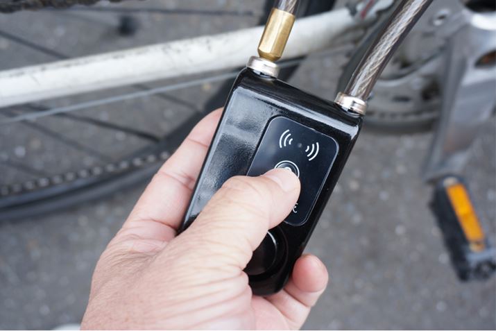 そこで発見したのがこのアイテム。「スマホで解錠ワイヤーアラームロック」です。文字どおり、スマホで操作してワイヤレスに解錠できるという時代にマッチしたワイヤーロックです。