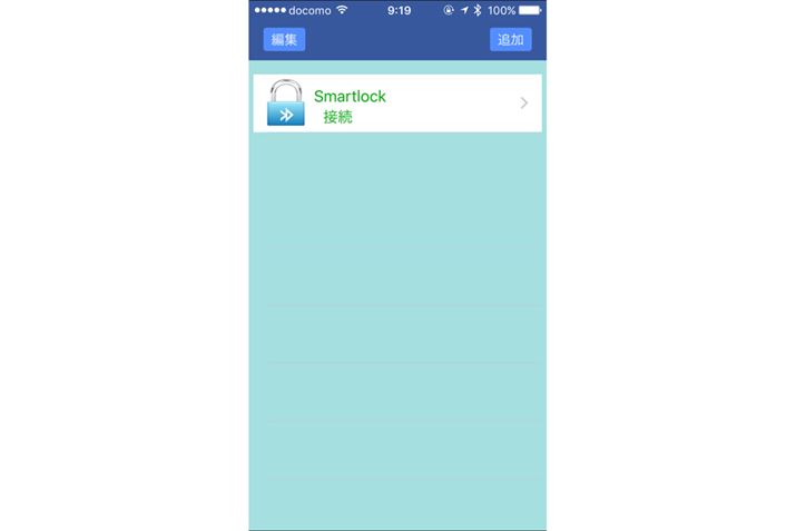 スマホでアプリを開くとパスワードを求められるので入力するとこの画面が表示されます。「追加」を押すとワイヤーロック本体と接続できます。iPhoneもAndroidも対応しています