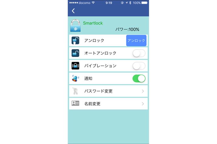 「アンロック」をタップすると手動で解錠。オートアンロックをオンにすれば近寄るだけで解錠ができるようになります