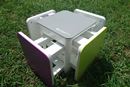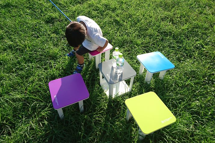 レジャーシートもいいですが、やはり腰掛ける場所があると何かと便利です。でもできるだけ荷物は減らしたいもの…なら、ドッペルギャンガーの「5in1テーブルチェアセット」はどうでしょう? 一見、ただのカラフルな箱のように見えますが、各面を引っ張っていくとあら不思議。スポッと抜けて4脚のイスとミニテーブルが現れます!