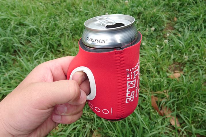 BBQで缶ビールを飲んでいると、どれが自分のだかわからなくなったことありませんか? お皿と箸で両手がいっぱいになってしまうため、どこかに缶を置いて、そのまま行方不明に…。でも「通せるクージー」があればそんなことにはなりません! 缶ビールを入れられる保冷カバーなのですが、指を通す穴がついているのがポイント。目印にもなりますし、お皿と一緒に持っておけるのでもうなくしません。結露がつかないのも地味にうれしいですよ。