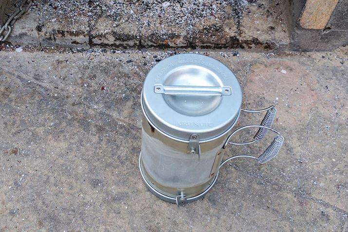 使った炭は再利用できるので、持ち帰りましょう! もちろん危険なので放置も禁止です。しかし、炭はまだアツアツ…。そんなときは「火消つぼ」がおすすめ。こちらは火おこしのときにご紹介したのと同じ「火おこし兼用火消つぼ」なのですが、その名のとおり「火消」にも使えるんです。中に炭を入れて上下にフタをすれば、あとは冷めるのを待つだけ。酸素に触れないようにすることで火を消す仕組みです。火おこしにも火消しにも使えるので、これはBBQに欠かせないアイテムですね!