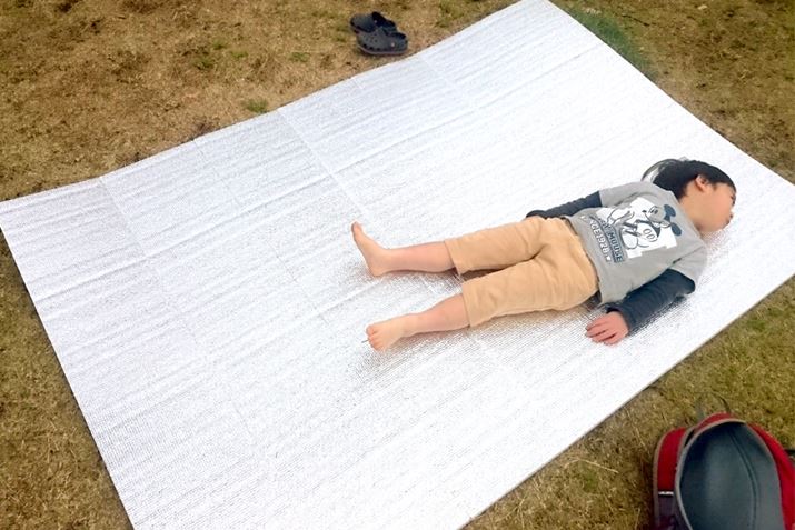 コンパクトなレジャーシートは持ち運びに便利ですが、その薄さがアダとなり、座ったときにお尻が痛くなることがありますよね。こちらの「折りたたみレジャーマット(極厚)」は、コンパクトさはないものの、とことん快適さにこだわったタイプ。厚さ15mmかつビッグサイズなので、お昼寝も快適にできます。通称「銀マット」として、キャンプ愛好家にも親しまれているそうですよ。