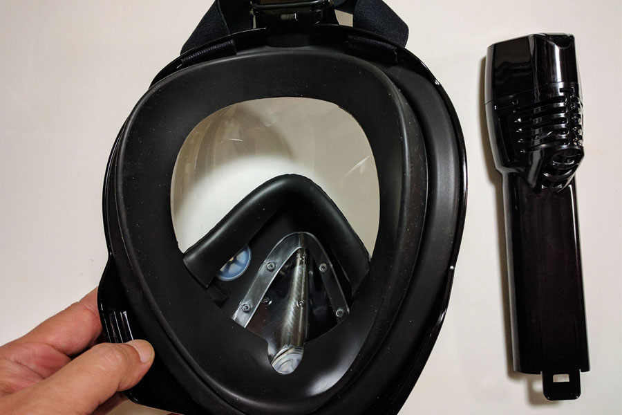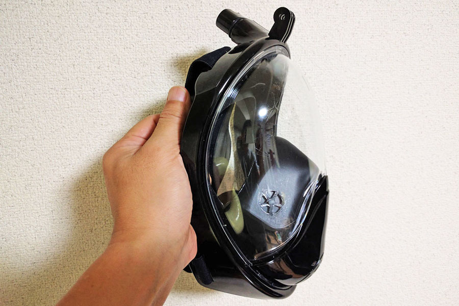 その名のとおり、フルフェイス型のシュノーケルマスクです。海外で生まれて話題になり、それが日本にも上陸してきたみたいですね。ちなみに、お忘れの方のために、これまでの普通のシュノーケルマスクはこんな感じでした。