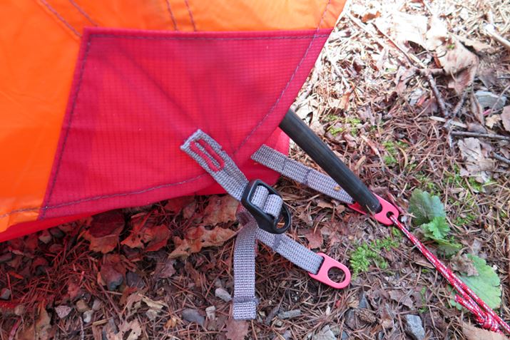 そのほか、細部も気を抜いていない。要所は補強され、各部のコードは細いものながら強度は十分。フライシートとインナーテント、そしてポールの連結も簡単だ。付属のペグには細いヒモがついているものを採用し、地面から引き抜く際には力をかけやすい。