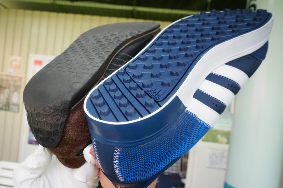 スイングの捻じれのパワーにも負けないようになっているためソールは硬め。それでも長い距離を歩くシューズなので履き心地がよいものばかりです