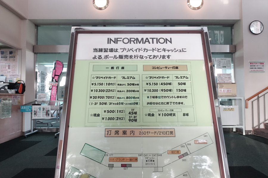 プリペイドカードを採用している練習場では最初にカードを購入してから受付で申し込みます