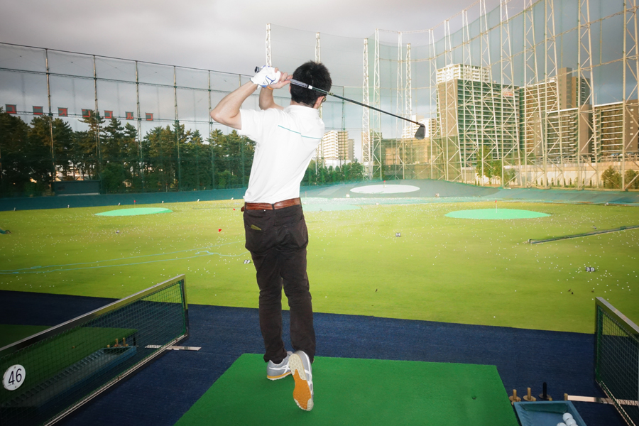 練習場では、マットや滑り止めのゴムの上に立つので普通のスニーカーでもスイングはできます。ルールやマナーの上でも問題ありません。ですが靴に強い負荷がかかるのでその靴を長く履きたいのならあまりおすすめできません。やはり専用に設計されているゴルフシューズのほうが安定したスイングができますし、上達のスピードにも少なからず影響すると思います。
