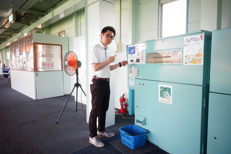 オートティーアップではないところでは、打席の近くにボール販売機が設置されていて、これでボールを買い、打席に持っていくのが一般的な方法ですね。