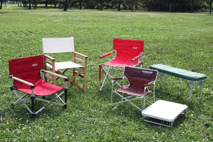 「ベンチ」は、座るだけではなく、クーラーボックスや水タンクなどのスタンドにしたり、バッグやブランケットの荷物置きとして利用したりできるので1脚あると重宝します。