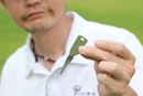 以下はセルフプレーのときにやるべきことなので、知識として覚えておいてください。芝からのショットの場合、芝が削れて土がむき出しの穴になります。これを「ディボット跡」と呼ぶのですが、放っておくと芝は一向に生えてきません。芝がまた生えてくるようにこの穴を土で埋める必要があります。これが目土です。