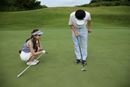 練習グリーンでパット練習(同・15分前にはパット練習終了)
