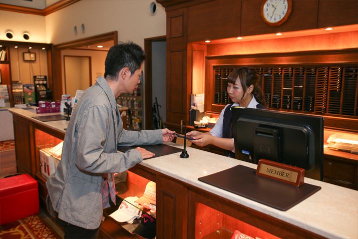 自動精算機があるところ便利ですが、カードホルダーを受付に渡して精算する形式もあります