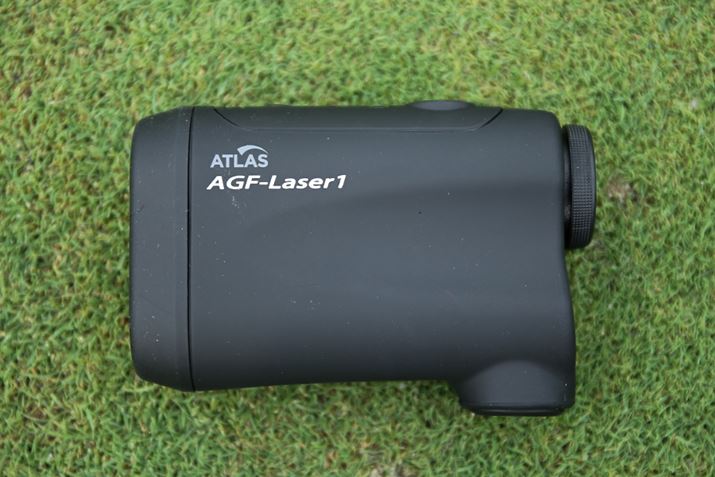 こちらも比較的軽量で小型に仕上げられたモデル。レーザーを当てやすくするために、手前の対象物を優先的に認識するピンサーチ機能が搭載されています。計測すると目標までの距離はもちろん、水平だった場合の距離、高低差、角度を瞬時に表示。シンプルな表示でわかりやすかったです。サイズがコンパクトで携帯に便利で、こちらも雨の日のプレーでも使えるモデルです
