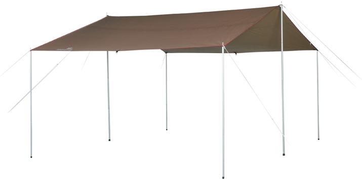 約5×4mの屋根ができるので、4人家族でもゆったり! 大きなタープを支えるべく高強度のポールが採用されているので、安定感もバツグンです。