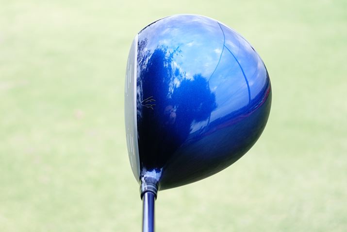 ヘッド自体は大きめではあるのですが、安心感は残しつつ、大きさを感じさせない細かい工夫がなされているのがゼクシオらしい部分です。トップブレードをすべて同色で仕上げず、バックフェース側と“色分け”することでボテッとした印象を与えないような仕上げにしてみたり、一番下のスコアラインを白く着色することでフェースの方向をわかりやすくしたり…。