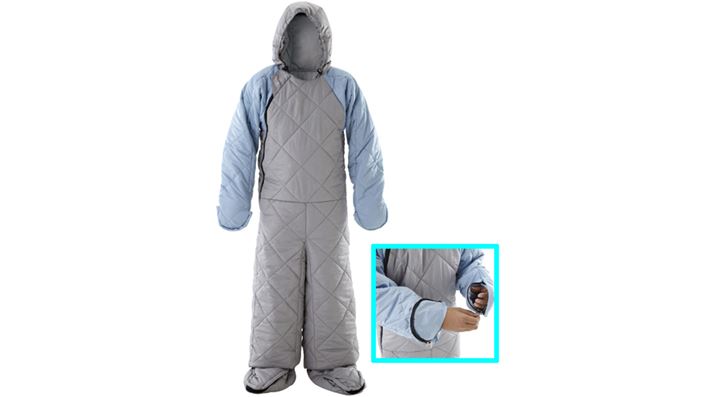 手足が自由に動かせる着ぐるみのようなシュラフなので、就寝前から着用可能。キャンプだけでなく家庭で利用すれば、暖房費の節約アイテムとしても活躍します。