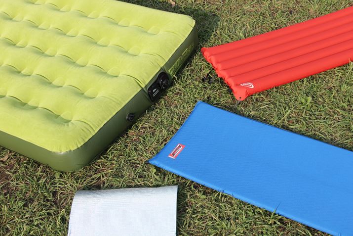 シュラフで暖かさは確保できたとしても、それだけでは快眠は望めません。テント内で眠るには、地面の凸凹や冷気を防ぐためにマットが必須です。マットには個々で使うものから、テントいっぱいに広げてみんなで使えるものまで選択肢がいろいろ。持ち運びを優先するのか、快適さを重視するのかで選んでみましょう。