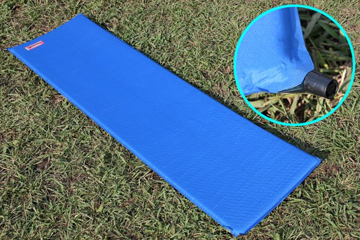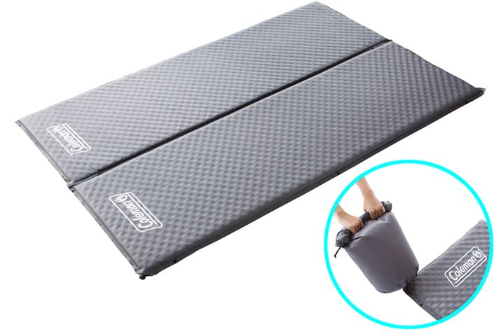 現在、オートキャンプの主流となっているのがインフレーターマットです。バルブを開けると内部のスポンジが膨張し、さらに自動的に外部の空気を吸い込んでマット全体がふくらむので、手間はかかりません。空気の入り具合を変えれば硬さも自由に調節できます。