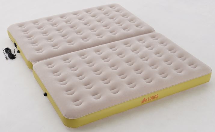 電動ポンプが内蔵されており、自動車のシガーソケットから給電できます。しかも、DCコードの長さは約10mもあるので、駐車スペースがテントから離れていても稼働させることが可能。マットの表面はベルベッド調なので、寝転んだ時の心地よさはバツグンです。