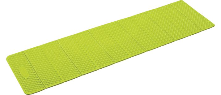 全面にディンプル加工を施すことで、地面からの距離を大きくし、地面から体に伝わる冷気を軽減。さらに突起が荷重を分散してくれるので、厚さ約1.6cmでもすぐれたクッション性が得られます。コンパクトに収納できるように、折りたたんだ際に凹凸が重なるように設計されているところも◎。