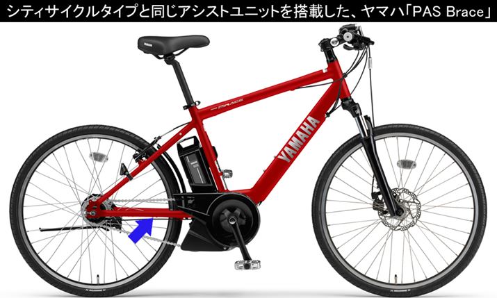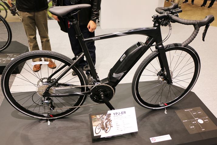 欧州向けのモーターユニット「PW-SE」を搭載した「YPJ-ER」は、ロードバイクの車体に太くてオフロードも走れるタイヤとディスクブレーキを装備し、より幅広いフィールドで遊べる仕様となっている