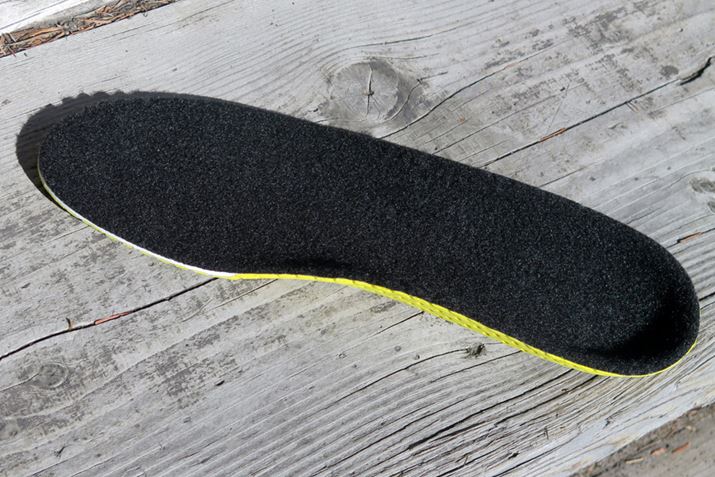 ブーツ内部にはフットベッド(インソール)が入っている。足裏に当たる部分は起毛し、保温力が高められている。また、フットベッドのフォルムからも想像できるように、マウンテンエクスパートGT EVOの足型はやはり少し細身。足幅が広い人には合わないかもしれない