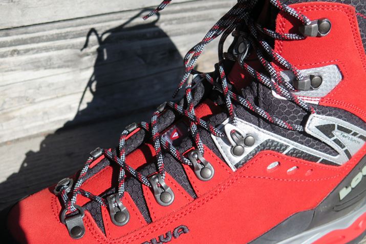 さて、ここまでマウンテンエクスパートGT EVOの特徴を話しつつも、実は雪山用アルパインブーツ全体に共通する部分も多かったりもした。では、いかにもマウンテンエクスパートGT EVOらしい部分とはどこなのか? そのひとつは、フィット感を調整するための仕組みであろう。具体的には、Dリング、フック、アイレットといった金属パーツとシューレースの関係である。これほど個別に細かくパーツを変え、簡単な調整で微妙なフィット感を生み出せるモデルはめずらしい。