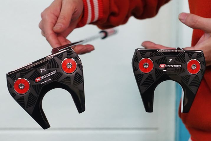 上記#7との違いはネック。ベントネックの#7はフェースの開閉を使わないストレートタイプのストロークに合いますが、この#7Sはヘッドの傾きが大きく、フェースの開閉を使うアークタイプにマッチします。切り返し後にヘッドがターンする力が大きいので小さなストロークでも強い転がりが打てるパターです。ヘッドは目標に合わせやすくミスヒットにも強い人気の形状ですが、ストロークタイプの違いで合うモデルも異なってくるのです。