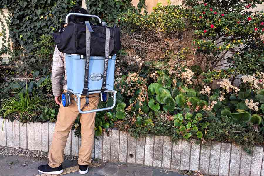 この使い分けができるため、平たんな道はカートを使い、険しい悪路ではリュックのように背負って歩くことができます。