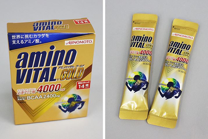 アミノ酸補給が手軽にできるとして人気が高いのが、味の素「アミノバイタル」。いくつかの種類がありますが、運動後の体のリカバリーには「アミノバイタル GOLD」が適するようです