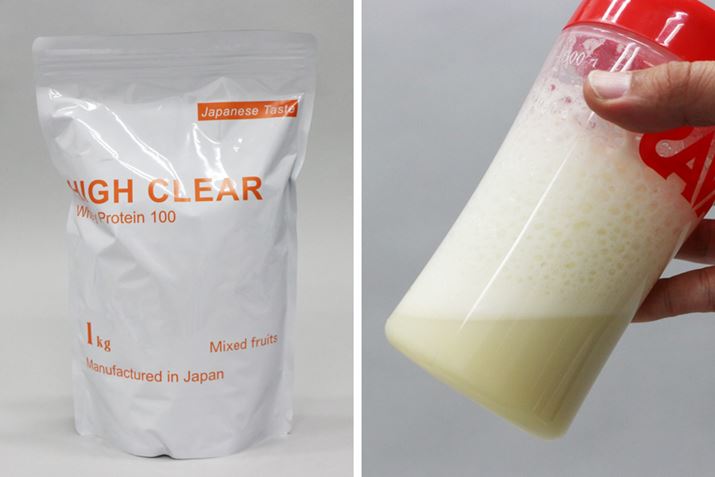 プロテインを利用すればたんぱく質が効率よく摂取できることは理解できても、プロテインは「マズくて飲みにくい」という印象があり、懸念している人も多いのではないでしょうか。しかし、それはもはや過去の話。かなり昔のプロテインは大豆を原料とした「ソイプロテイン」が大半で、水に溶けにくいため飲みにくく、味やニオイに強いクセがありました。今でもソイプロテインはありますが、水溶け具合が格段によくなり、飲みやすさは劇的に改善されています。さらに近年は、ソイプロテインよりも水に溶けやすい「ホエイプロテイン」が主流。牛乳に含まれる「乳清」を原料としたホエイプロテインは味が淡白で飲みやすく、水溶性ビタミンやアミノ酸なども豊富なため人気です。