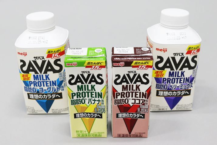 運動後30分以内に手早くプロテインを摂取したいなら、ドリンクタイプが優秀。「ザバス MILK PROTEIN」シリーズはコンビニなどでも販売されているので、気が向いた時に摂取できます。乳たんぱく質を15g配合しながら(容量200mlタイプと400mlタイプ)、脂肪分ゼロ! 一般的な乳飲料と変わらない味で、すっきりと仕上げられているので運動したあとでもゴクゴク飲めるでしょう