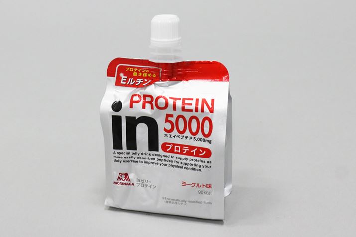 ゼリータイプも飲みやすさは上々。商品により味は異なりますが、森永「inゼリー プロテイン ヨーグルト味」(たんぱく質5g)は甘過ぎず、一般的な栄養補助食品のゼリー飲料とほぼ変わらない感覚で飲めました