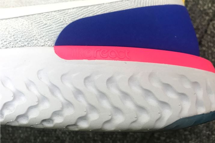 ミッドソール表面に独自の凹凸を配した素材「ナイキ リアクト」を新開発。「衝撃吸収性」「反発性」「軽量性」「耐久性」のすべてを同時に追求している