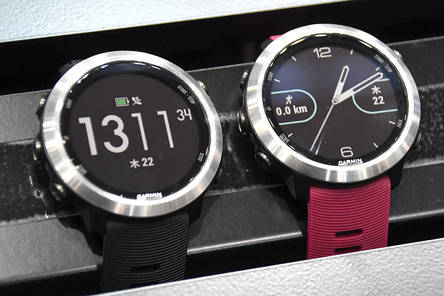 ランニングウォッチは、主要メーカーが揃い踏み。GPS機能や心拍数計などを搭載するハイエンドモデルから、機能を絞り直感的な操作性を訴求したシンプルモデルまで、さまざまなモデルが展示されていた。特に注目なのは、500曲の音楽データを転送できる新作GPSウォッチ「ForeAthlete 645 Music」だ。