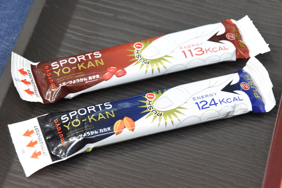 押すだけでようかんが飛び出す特殊な包装を採用した「スポーツようかん」