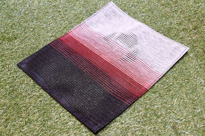 アッパーに使われる1枚布の「Flexweave」。白いほうがつま先側で、黒いほうがヒール側。部位によって色だけではなく、繊維の種類や織りの密度が異なる