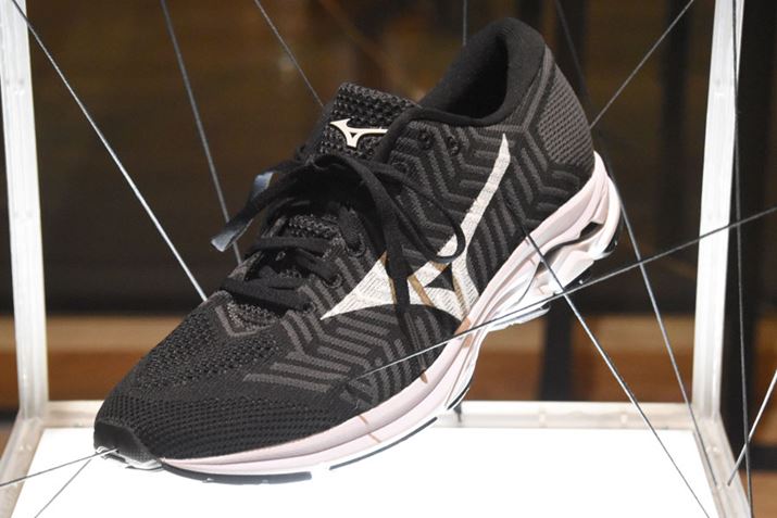 ランニングシューズ「WAVEKNIT R1」。ミズノが初めてニット素材のアッパーを搭載させたランニングシューズで、世界中で販売される予定だ