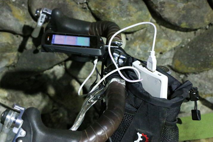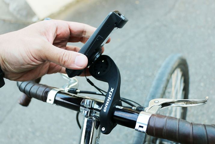 自転車への取り付けは、付属のマウントと六角レンチを使用。自転車のハンドルにマウントを装着し、そのマウントにX5-Evoを差し込むだけなので、休憩などで自転車から離れる際には手軽に外して持って行くことができる
