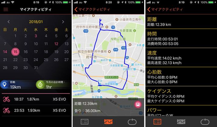 心拍計など各種センサーの接続に対応しているので、ハートレートモニター用のチェストベルトやスピードセンサー、パワーメーターなどを用意すれば、より細かいデータを記録できる