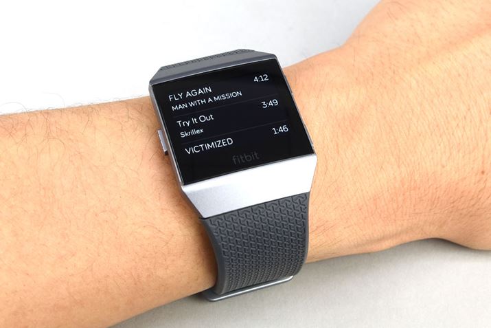 PC版アプリ「Fitbit Connect」を使用して「Fitbit Ionic」内に音楽を転送。スマホが手元になくても本体のみで音楽プレーヤーを利用できる。なお、再生モードでは、選曲再生やシャッフル再生が行える