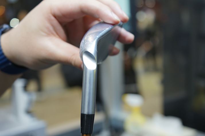 ピンのアイアンの特徴でもあるネックのえぐれ。実はこれ、ライ角やロフト角を調整するためのもの。ここが曲がることによってほかの部分の外装にシワやひび割れが起きないようにする工夫なんです