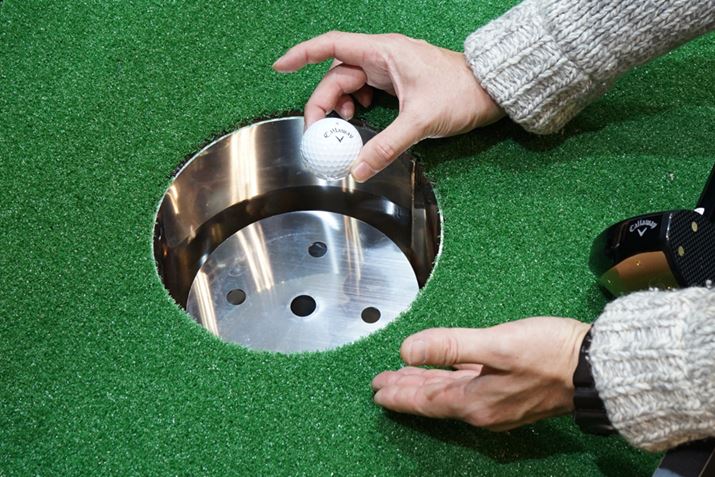 これは短い距離なのでパッティングに近い動きですが、実際のコースにはもっと長いホールもあるので、ゴルフで50ヤードぐらい打つスイングをすることもあります