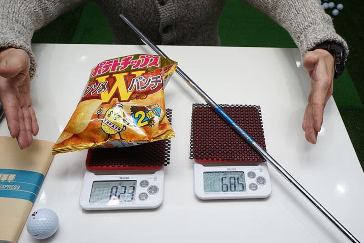 ここに展示してあったのはアイアン用軽量スチールシャフト「ゼロス6」。これは、自社が持つアイアン用スチールシャフトの世界最軽量記録を自ら更新したモデル。ポテトチップス1袋よりも軽いんです!
