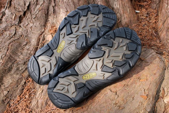 トレッキングシューズよりもウォーキングシューズ、トレイルランニングシューズのほうが、一般的にソールのパターンは細かい。また、ハードな環境で使うことが想定されているトレッキングシューズは、摩耗してミゾがすぐになくならないように隙間が広めのブロック状のパターンとなっている。これにより、岩場などでも前後左右に滑りにくい歩行を実現し、パターンの間に泥が入り込んだ際もすぐに落ちるようになっている。