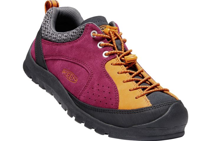 キーンの特徴ともいえる丸みを帯びたつま先を持ち、ソールも適度に湾曲。トレッキング系のシューズながら軽快に歩ける一足だ。ミッドカットだが、うしろの部分だけはアッパーが少し低くデザインされており、強く蹴り出してもアキレス腱付近へ大きな負荷はかからない。独自の防水透湿性素材である「KEEN DRY」を使い、長時間歩いていても蒸れが少ないのも高ポイントで、クラシカルな雰囲気もよい。