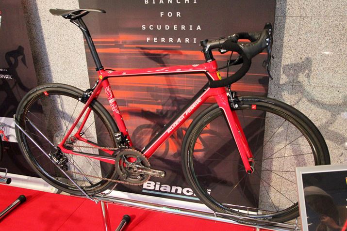 最高級のカーボンとパーツを組み合わせた、ビアンキとフェラーリのコラボレーションモデルはメーカー希望小売価格2,200,000円(税別)! ただ乗るためだけでなく、所有欲を満たす1台を選ぶのも一興だ